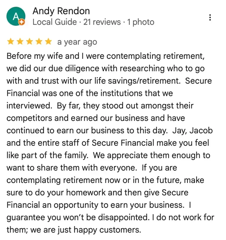 Information provided on these sites is for informational and/or educational purposes only and should not be considered investment advice or a recommendation of any investment product. Advice is provided only by Secure Financial Management's advisory personnel after entering into an advisory agreement and after Secure Financial Management has received all requested background and account information.